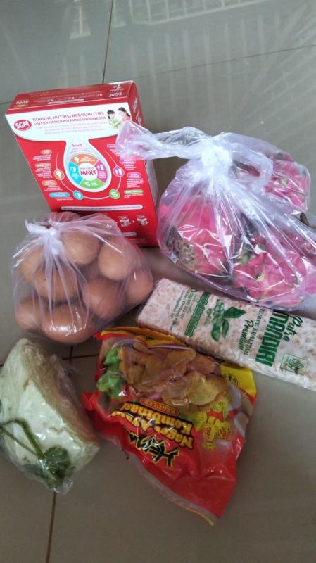 Total 24 balita Stunting menerima paket PMT berupa bahan makanan dan susu antara lain : telur ayam, susu formula, tempe, nuget ayam, sayuran dan buah naga.