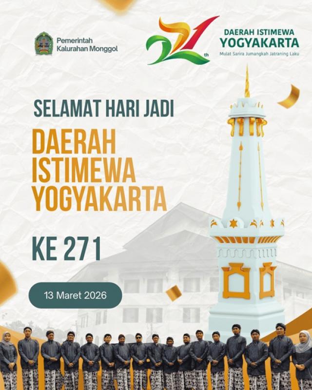 Hari ini, 13 Maret 2026, DIY genap berusia 271 tahun. Semangat Mulat Sarira Jumangkah Jantaraning Laku menjadi tema Hari Jadi ke-271.
